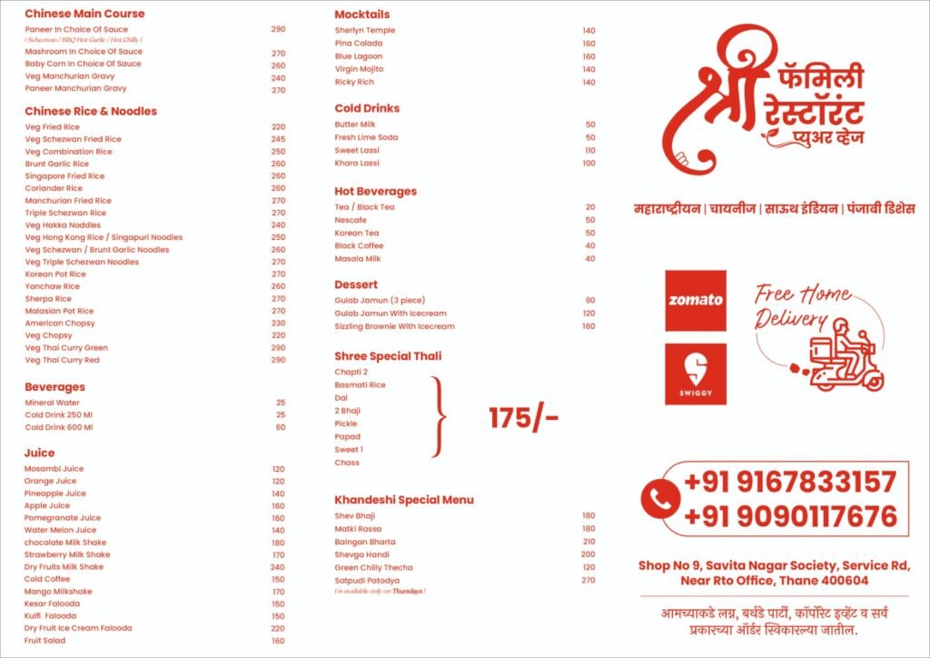 A Celebration of Taste, Tradition & Togetherness Our Menu At Shree Family Restaurant, our menu is thoughtfully crafted to bring you the true flavors of Indian cuisine, made with love and the finest ingredients.